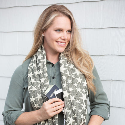 The SHOLDIT® Lady Liberty Infinity Scarf with Pocket™ is crafted from lightweight, breathable fabric that’s comfortable to wear year-round. It keeps your essentials secure and close without weighing you down, offering a fresh, stylish look with every wear. It even converts into a small purse!